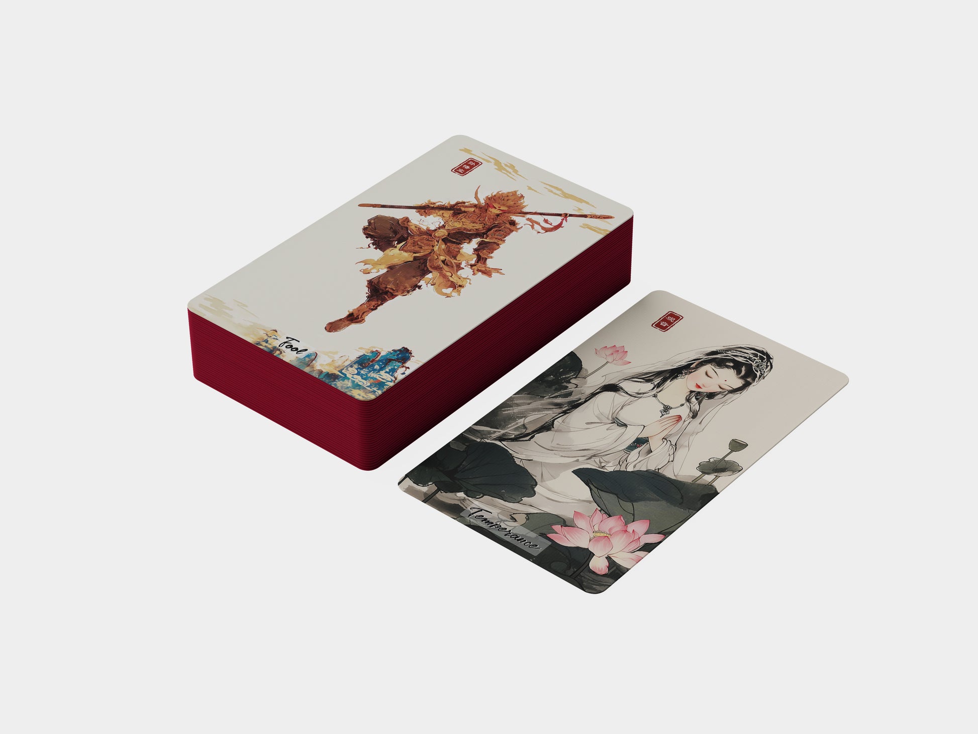 The entire deck is illustrated using traditional Chinese ink painting techniques. The unique charm and expressive power of ink art vividly bring to life the fantastical world of Chinese mythology. With rich variations of ink tones, the cards depict mythological characters and grand scenes with stunning detail and magnificence.